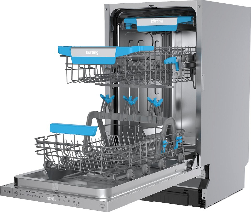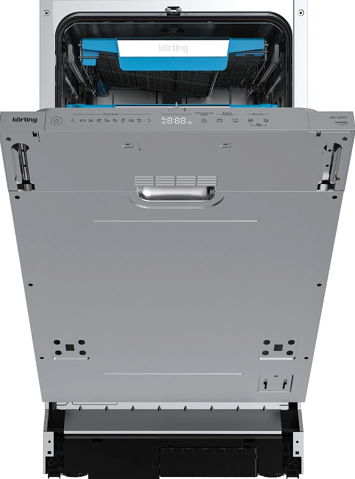 Встраиваемая посудомоечная машина Korting KDI 45977 представляет собой уникальное сочетание стильного дизайна и передовых технологий. Серебристая панель управления и внутреннее освещение LED придают ей современный и элегантный вид. Этот прибор впишется в любой интерьер и станет идеальным дополнением к вашей кухне.