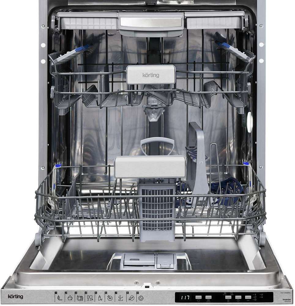 Встраиваемая посудомоечная машина Korting KDI 60898 I — стильный и продуманный кухонный прибор турецкого производства с гарантией 24 мес, рассчитанный на нишу 82—88×60×58 см и предназначенный для встраивания в корпус стандартной ширины 60 см. Корпус высотой 82-87 см и глубиной 57 см, а серебристая панель управления с закрытой дверцей и LED-дисплеем обеспечивает аккуратный внешний вид и удобный доступ к режимам.