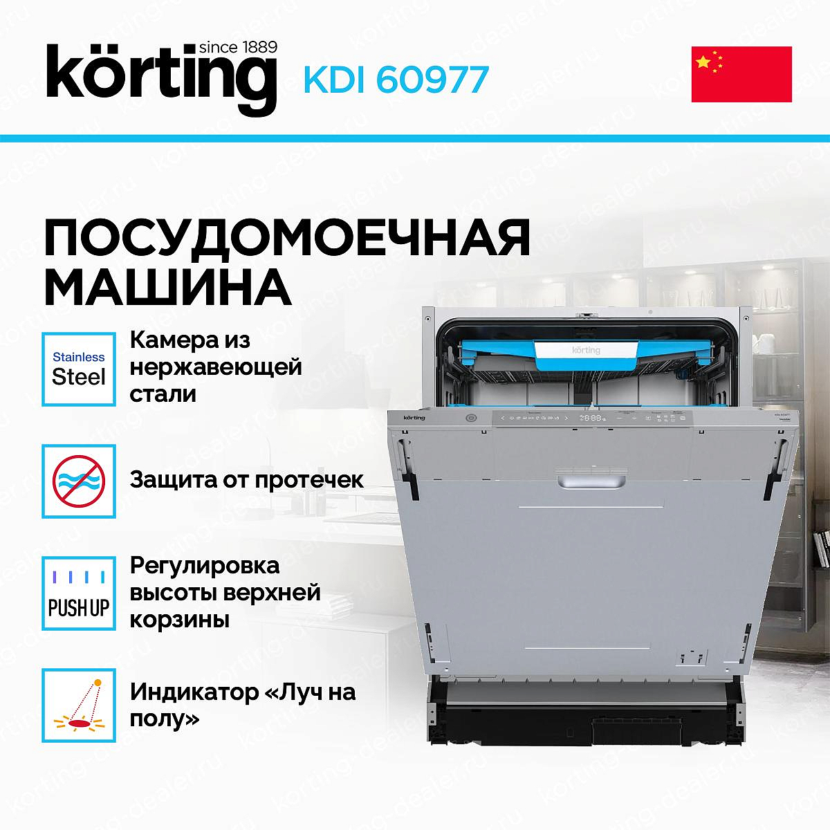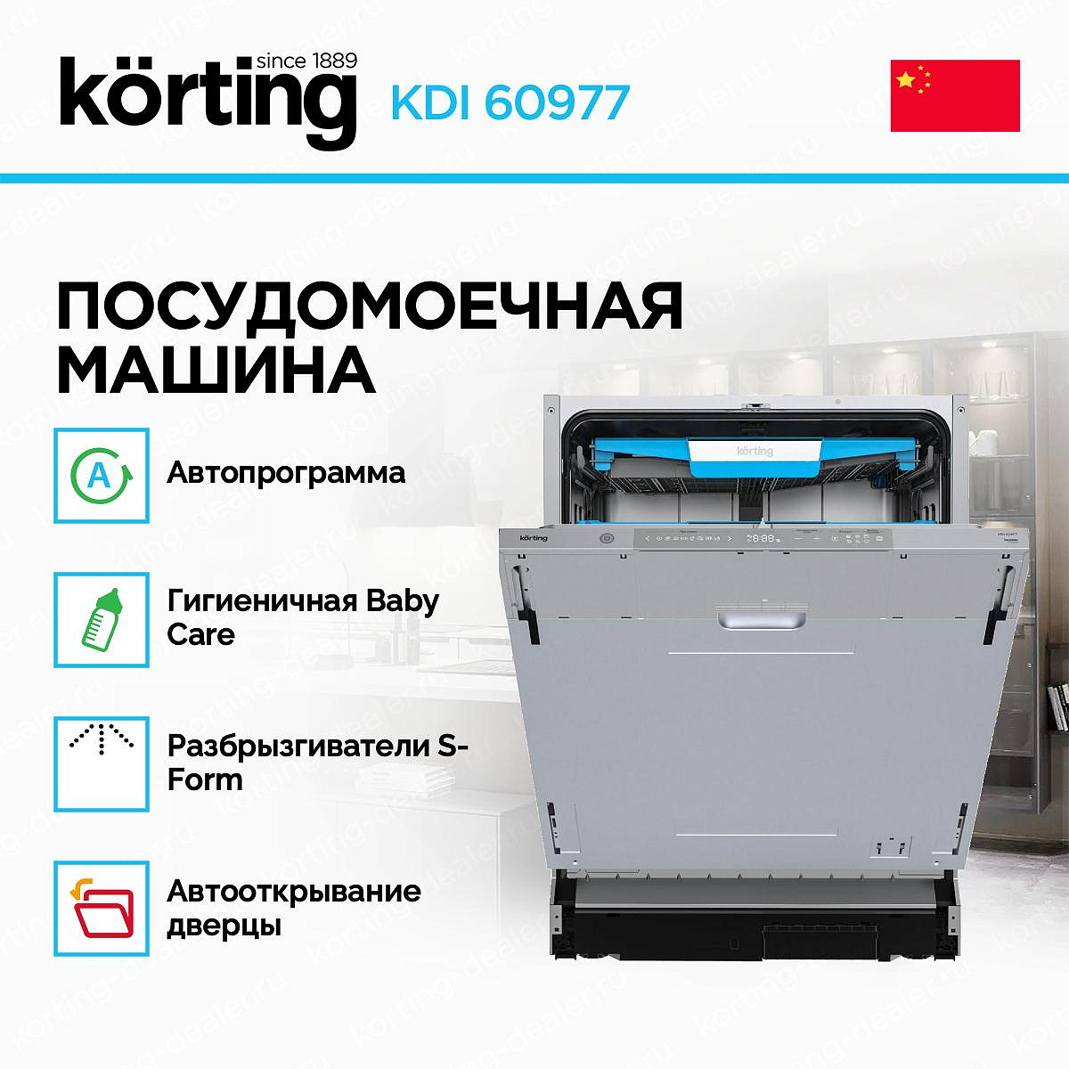 В мире встраиваемой техники высокого класса ценятся не только функциональность и надежность, но и способность прибора экономить ресурсы без ущерба для качества. Модель Korting KDI 60977 — это полноразмерная встраиваемая посудомоечная машина шириной 59,9 см, которая объединяет в себе рекордную энергоэффективность (класс A+++), передовые технологии и расширенный набор функций. Она вмещает до 14 комплектов посуды, предлагает 8 программ мойки, включая гигиеническую Baby Care и самоочистку, и оснащена системой автооткрывания дверцы Dry Plus.