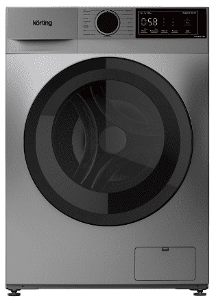 Это узкая стиральная машина шириной всего 45 см (габариты: 59,5 × 47,5 × 85 см), специально разработанная для квартир с ограниченным пространством. Её корпус в серебристом полированном исполнении в сочетании с чёрным люком и регулятором выглядит стильно и легко вписывается в любой интерьер — от скандинавского минимализма до современной классики. Панорамное смотровое окно открывается на 165°, что значительно упрощает загрузку и выгрузку даже крупногабаритных вещей.