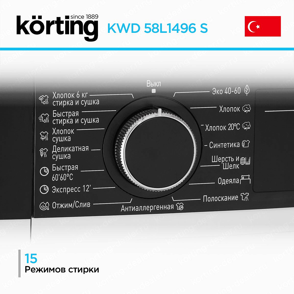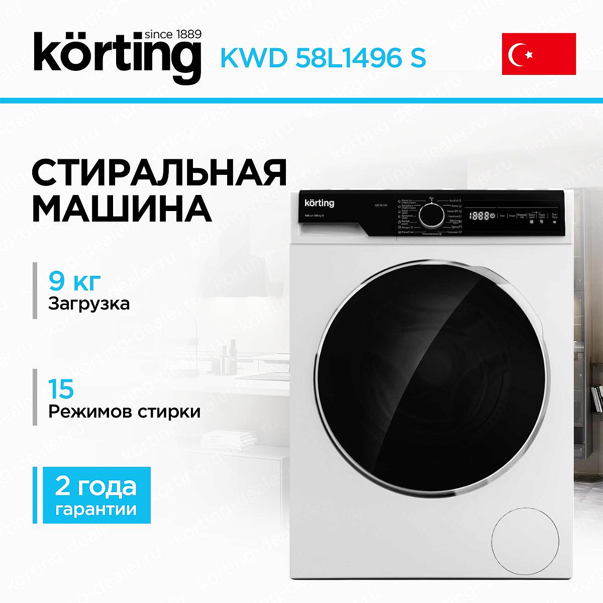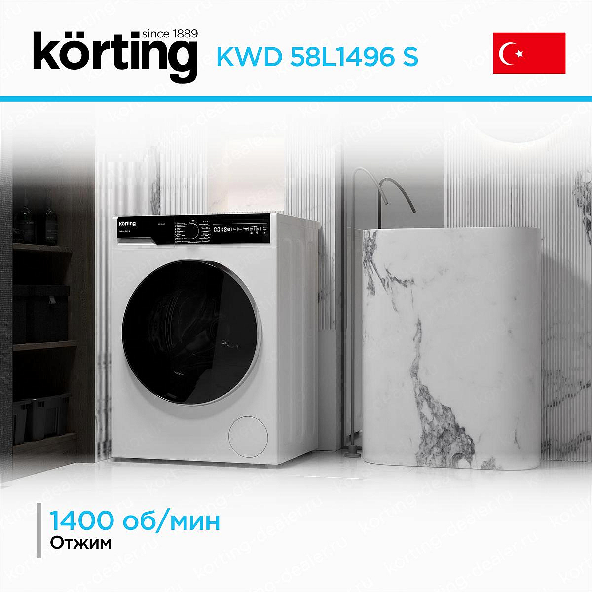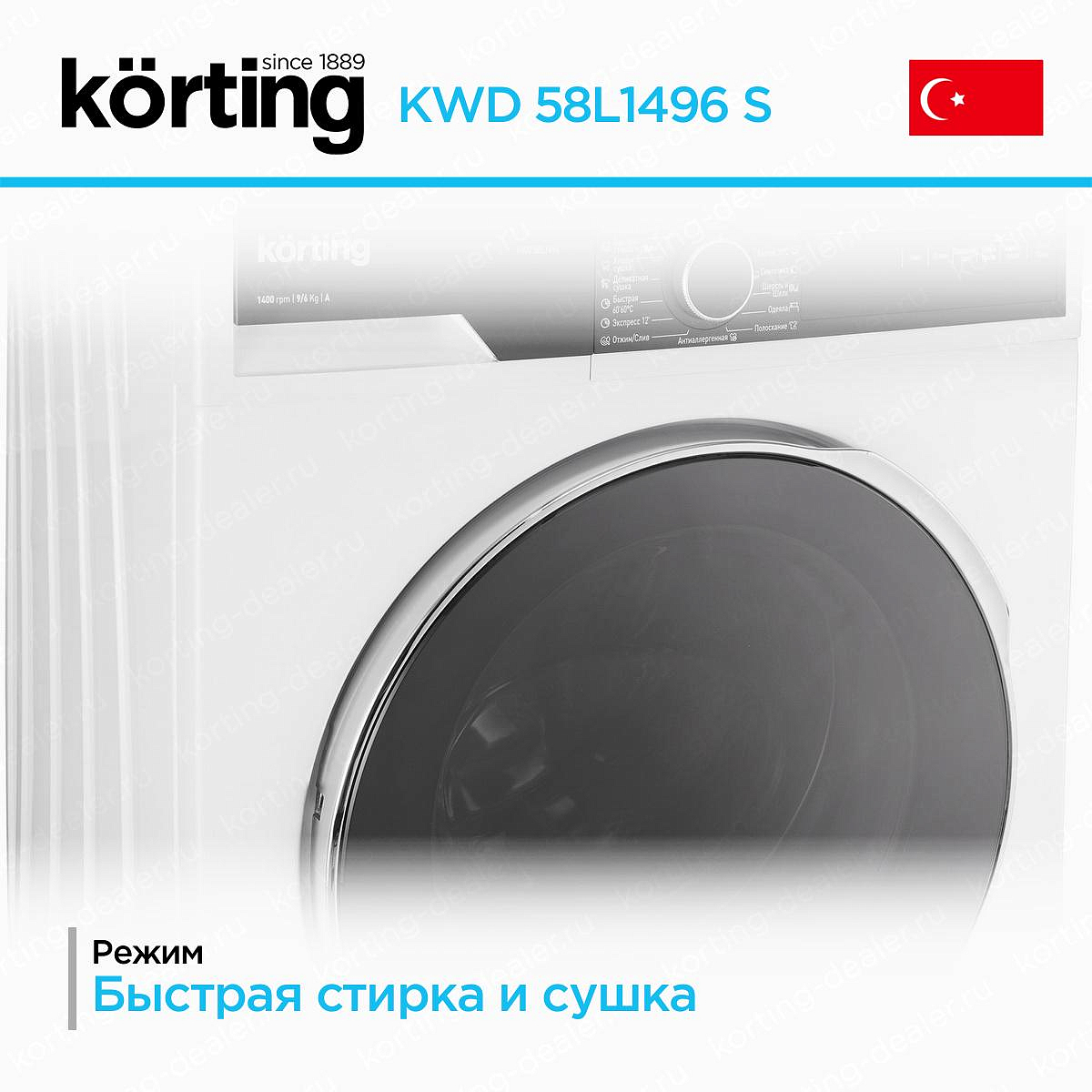 Стиральная машина Korting 58L1496 S имеет стильный дизайн. Она представлена в темно-сером цвете, а ее панель управления и дверца люка — в черном. Такой дизайн будет лаконично смотреться и подчеркнет ее помещения. Товар произведен в Турции с габаритами 84,5×59,7×58,2 см, поэтому вам не стоит беспокоиться о том, что он займет много места.
