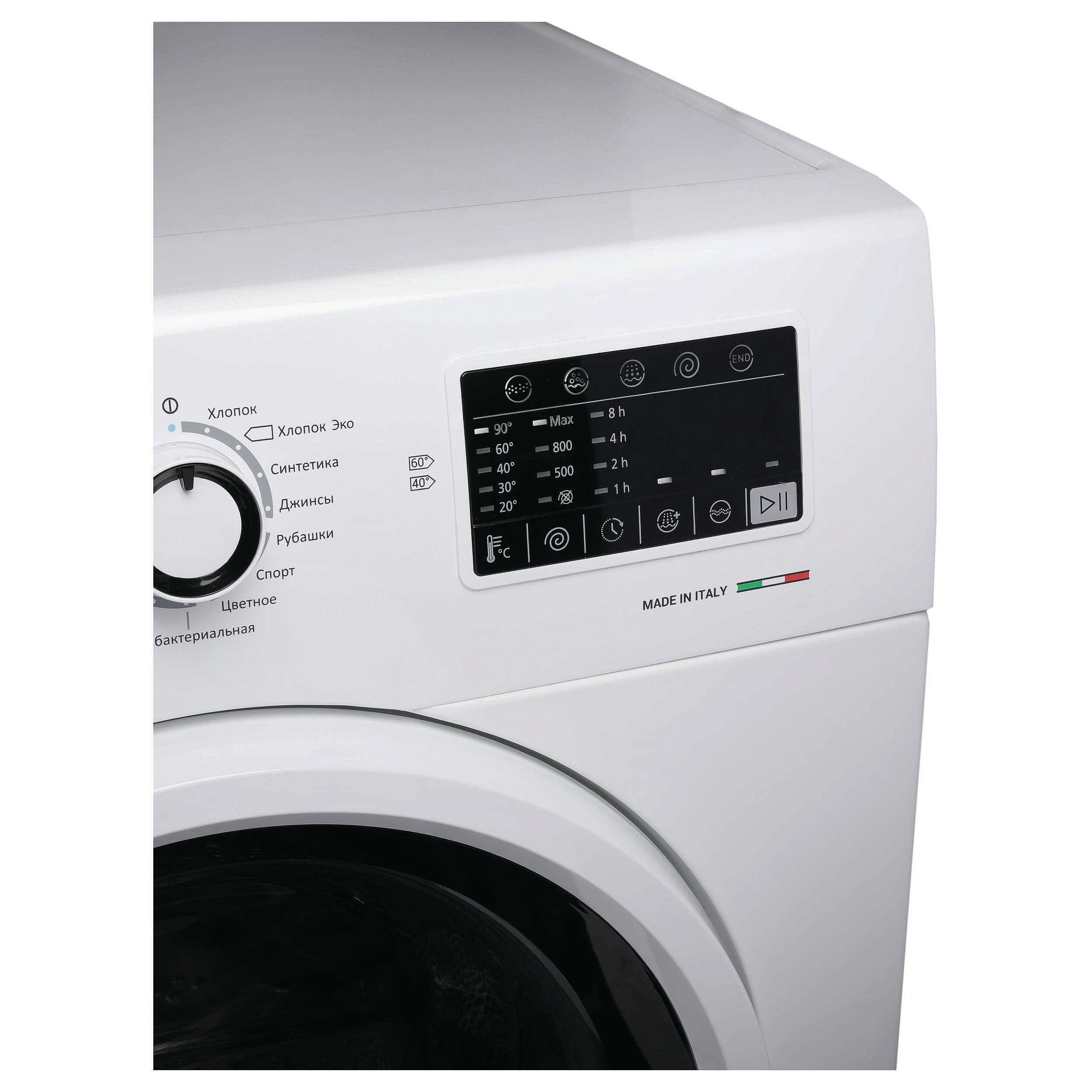 Прибор оснащен 15 программами, среди которых «Антибактериальная» и «Джинсы» с дополнительными циклами полоскания, «Шерсть» и «Ручная» со специальным алгоритмом вращения барабана.
