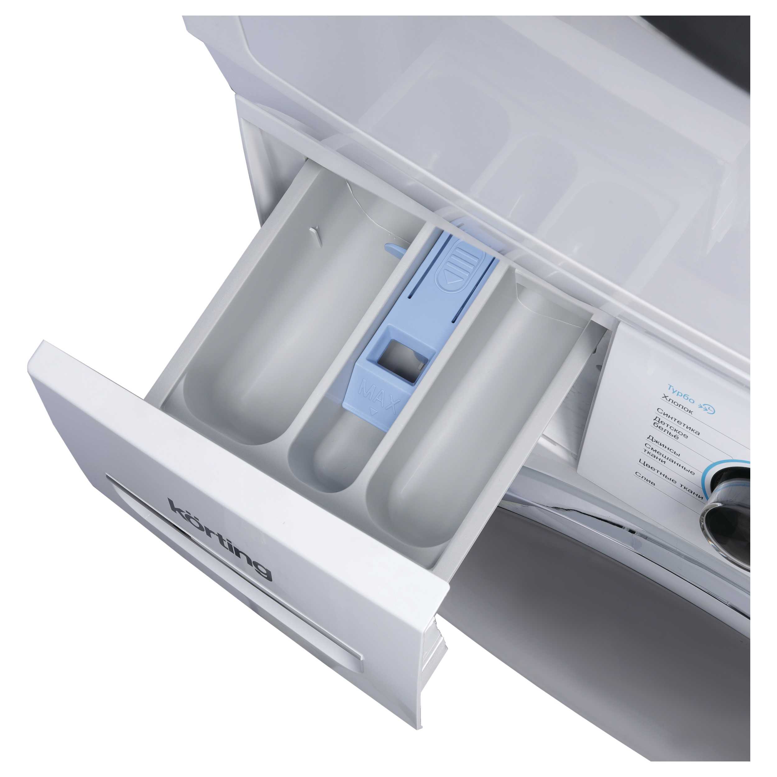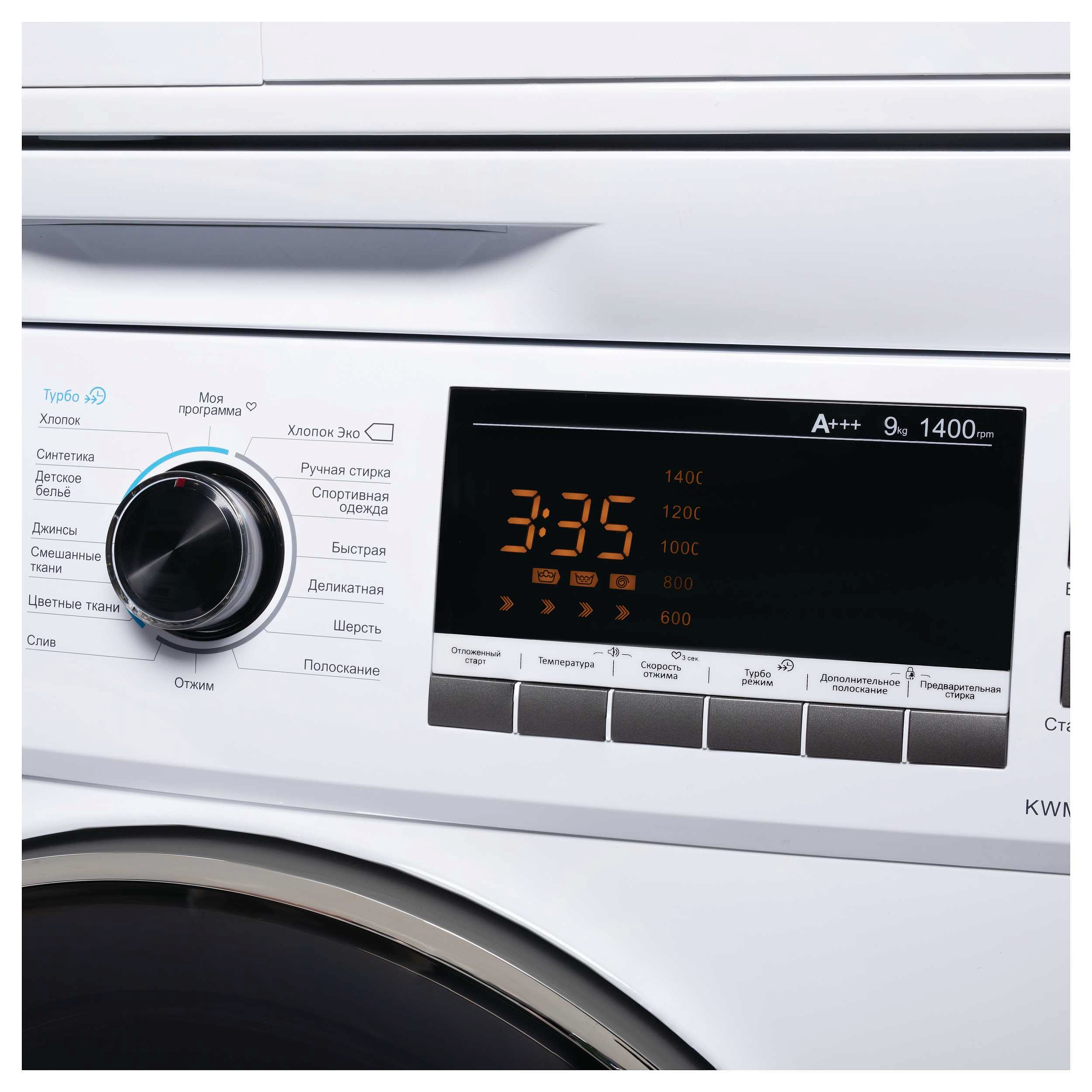 Дисплеем оснащены большинство электроприборов фирмы «Кёртинг». Он может отображать время, оставшееся до завершения цикла стирки. Удобен при выборе программ и настройке скорости отжима или дополнительных опций. В зависимости от модели — дисплей может быть цифровым или сенсорным.
