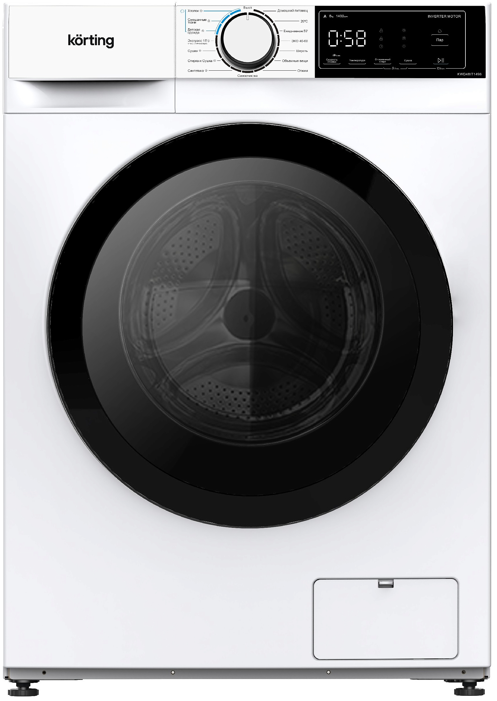 Электронное управление дополнено чётким LED-дисплеем с белой подсветкой, отображающим этапы программы, настройки и оставшееся время. В арсенале — 16 программ: хлопок, синтетика, смесовые ткани, шерсть, джинсы, детские вещи, одеяла, повседневная стирка, ECO-режим, а также специализированные циклы — экспресс за 15 минут, стирка с паром и уникальный режим «стирка + сушка за 1 час». Можно выбрать скорость отжима, отложить запуск на 24 часа, активировать автоочистку барабана или воспользоваться функцией запоминания любимых программ. Сушка доступна как по времени, так и по уровню остаточной влажности — для хлопка, синтетики и смешанных тканей.