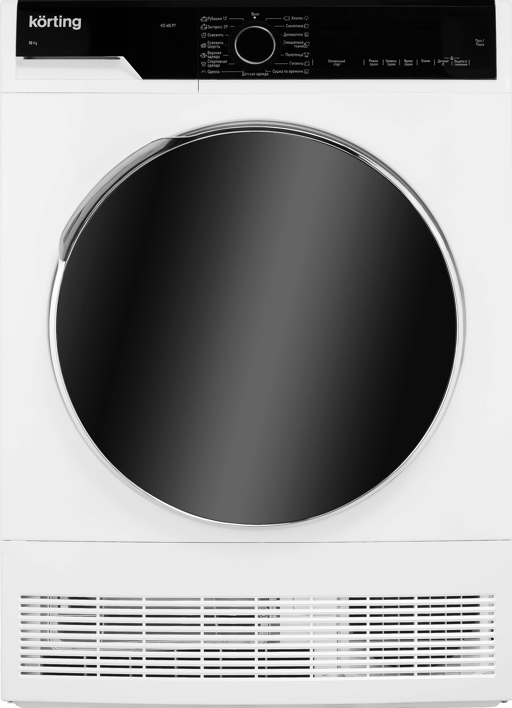 Сушильная машина Korting 60L97 с конденсационным типом сушки оснащена 15 режимами для различных типов тканей. Корпус модели выполнен в белом цвете, а люк и панель управления — в чёрном. Такой дизайн будет лаконично смотреться в любом интерьере. За счёт своей габаритов она не займёт много места, будет удобно для встраивания. Техника имеет: высота — 84,5 см, ширина — 59,6 см, глубина — 63,9 см.