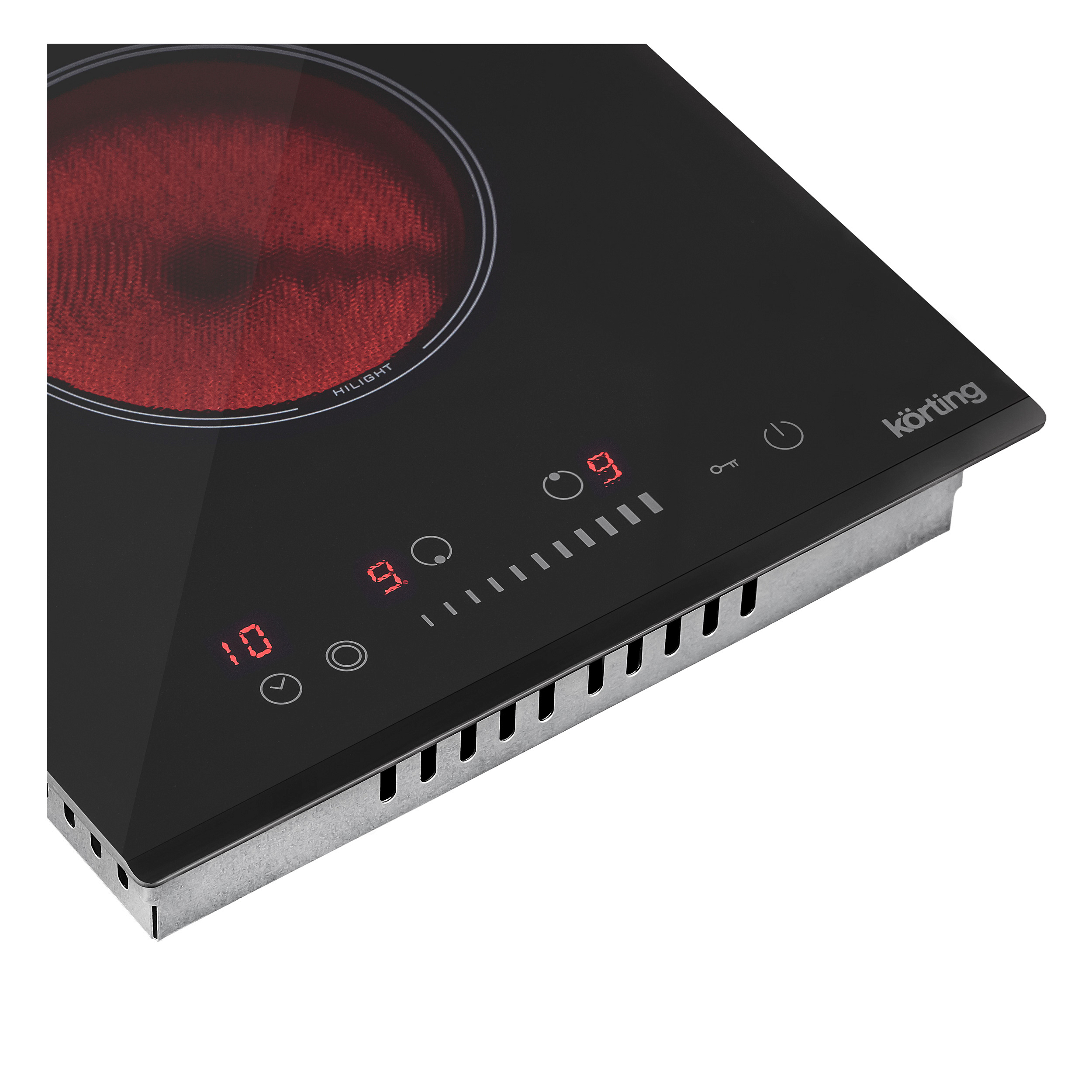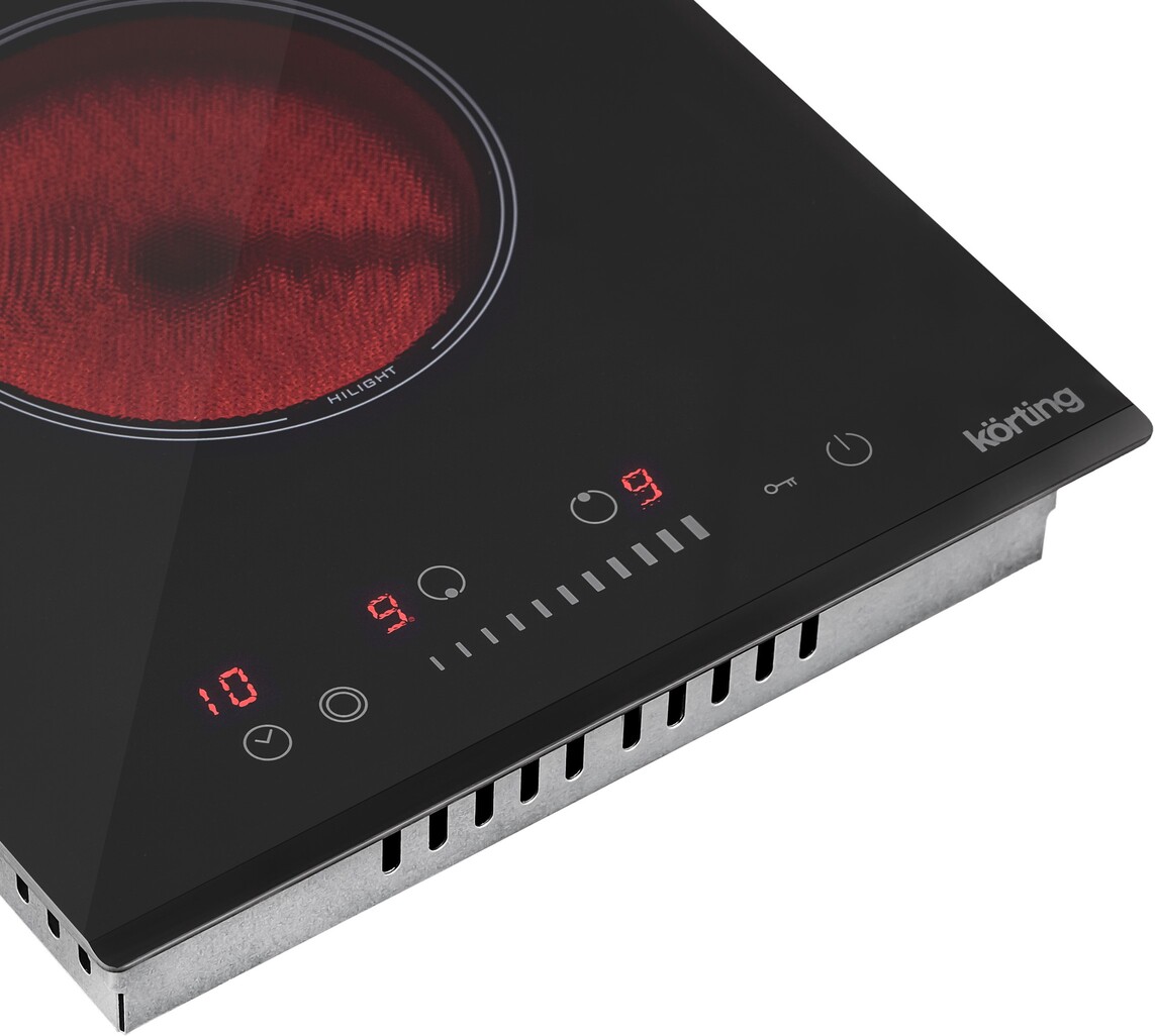 Прибор оснащен 2 варочными зонами с типом нагрева Hilight. Количество ступеней нагрева — 9, что позволяет точно подобрать температуру для приготовления различных блюд. Кроме того, имеется двухконтурная конфорка, что позволяет использовать посуду разного диаметра.