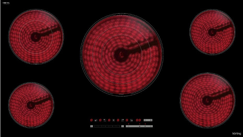 Стеклокерамические варочные панели оснащены высококачественными Hi-light нагревательными элементами, которые изготавливаются из сплавов повышенного сопротивления. При температуре выше 50 градусов ленты начинают светиться красным, что указывает на возможность ожога при прикосновении и является элементом безопасности.