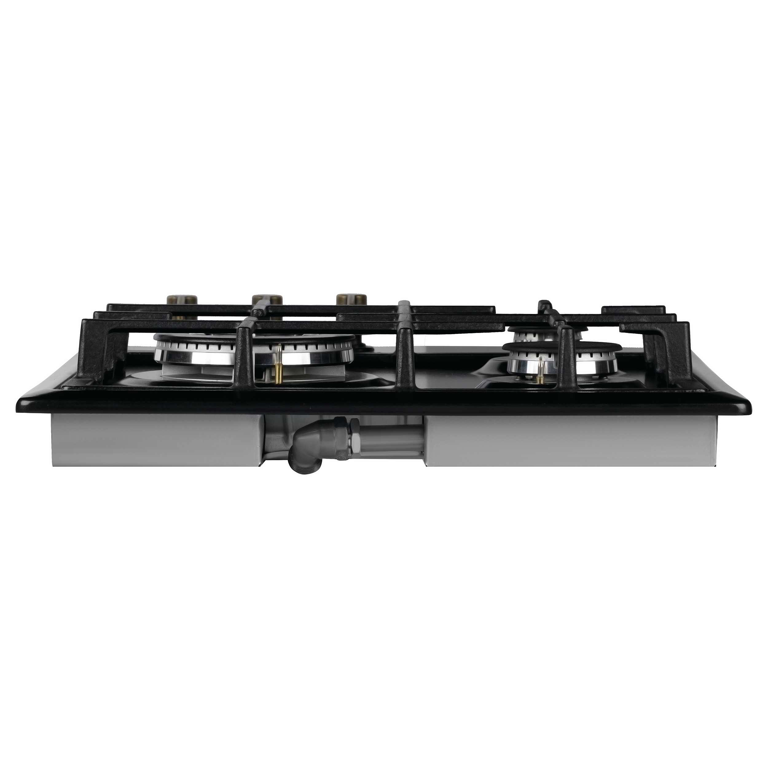 На поверхности расположены три газовые горелки: мощная WOK-конфорка на 3,6 кВт — идеальна для быстрой жарки и обжаривания в глубоких сковородах, а две вспомогательные зоны (1,75 кВт и 1 кВт) обеспечивают точный контроль при тушении или подогреве. Управление — механическое, с поворотными переключателями: надёжно, привычно и долговечно. Автоматический электроподжиг срабатывает прямо при повороте ручки, а система газ-контроля мгновенно перекрывает подачу топлива, если пламя случайно погаснет.