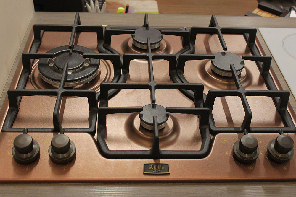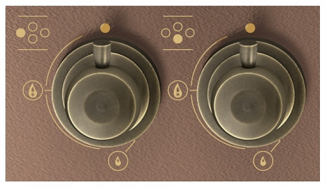 Газовая варочная панель в стиле ретро Korting HG 6115 CTRC отличается оригинальным расположением конфорок и необычным цветом поверхности — медным. Поворотные регуляторы выполнены из латуни с покрытием цвета темной бронзы. Они не только идеально гармонируют с поверхностью, но и практичны в уходе. В процессе приготовления остаются холодными.