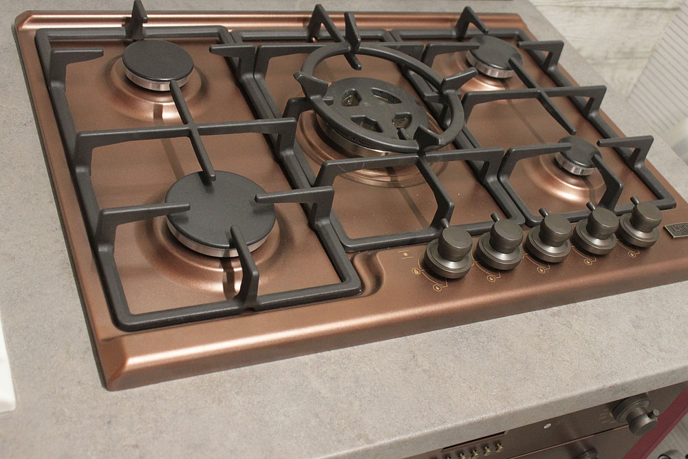 Варочная панель Korting HG 7115 CTRC в цвете медь и неоклассическом стиле подчеркнет изысканность кухонного интерьера. Оснащена 5 конфорками, включая сверхмощную WOK c тремя рядами пламени. Управление осуществляется с помощью стильных и удобных поворотных регуляторов из латуни.