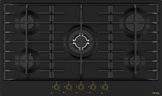 Материал поверхности - металл, который обеспечивает долговечность и легкую очистку. Черный цвет поверхности подчеркивает современный и стильный дизайн. Держатели для посуды выполнены из чугуна, что обеспечивает прочность и надежность в использовании. Бронзовый цвет фурнитуры добавляет эстетическую привлекательность и изысканность. Эта модель оснащена пятью варочными зонами, включая сверхмощную конфорку WOK, что делает ее идеальной для приготовления различных блюд. Механическое управление и поворотные переключатели обеспечивают простоту и удобство использования.