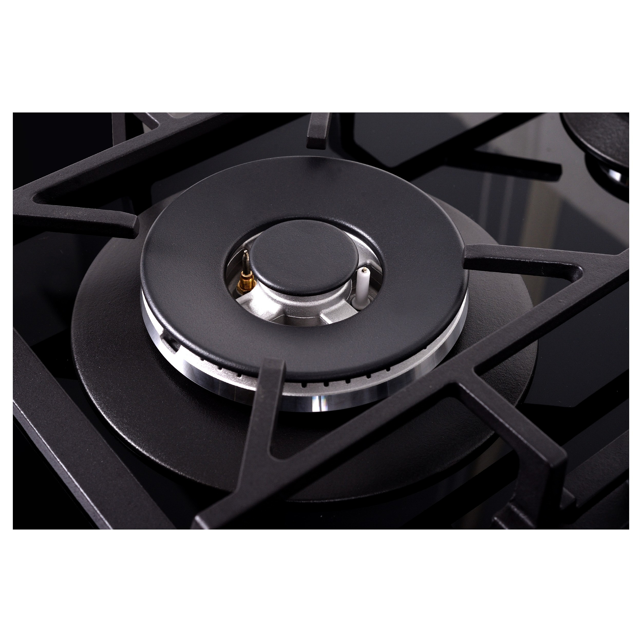 Управление варочной панелью осуществляется механическими поворотными переключателями из металла, что добавляет устройству профессиональный стиль и предотвращает перегрев элементов управления. Для удобства и безопасности предусмотрена система автоматического электроподжига: достаточно повернуть и нажать регулятор, чтобы конфорка мгновенно зажглась без использования спичек или зажигалок. Дополнительно установлена функция газ-контроля, которая автоматически прекращает подачу газа при случайном погасании пламени, обеспечивая безопасность во время эксплуатации.