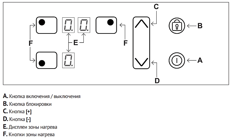 Индикация остаточного тепла может быть одноступенчатой и двухступенчатой (зависит от конкретной модели). Эта система безопасности выводит на дисплей варочной панели информацию о том, насколько поверхность конфорки горячая. Обычно литера «H» означает очень высокую температуру, а «h» — чуть ниже. Но, тем не менее, риск получить ожог остаётся.