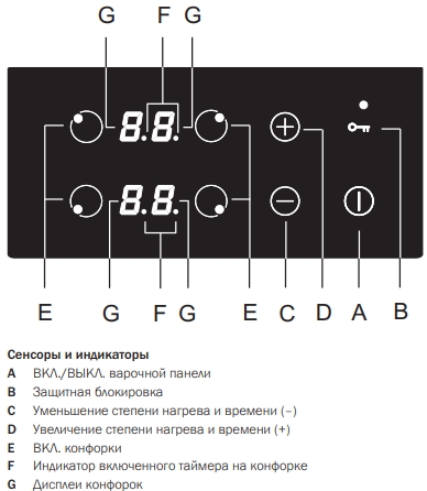 Индикация остаточного тепла может быть одноступенчатой и двухступенчатой (зависит от конкретной модели). Эта система безопасности выводит на дисплей варочной панели информацию о том, насколько поверхность конфорки горячая. Обычно литера «H» означает очень высокую температуру, а «h» — чуть ниже. Но, тем не менее, риск получить ожог остаётся.