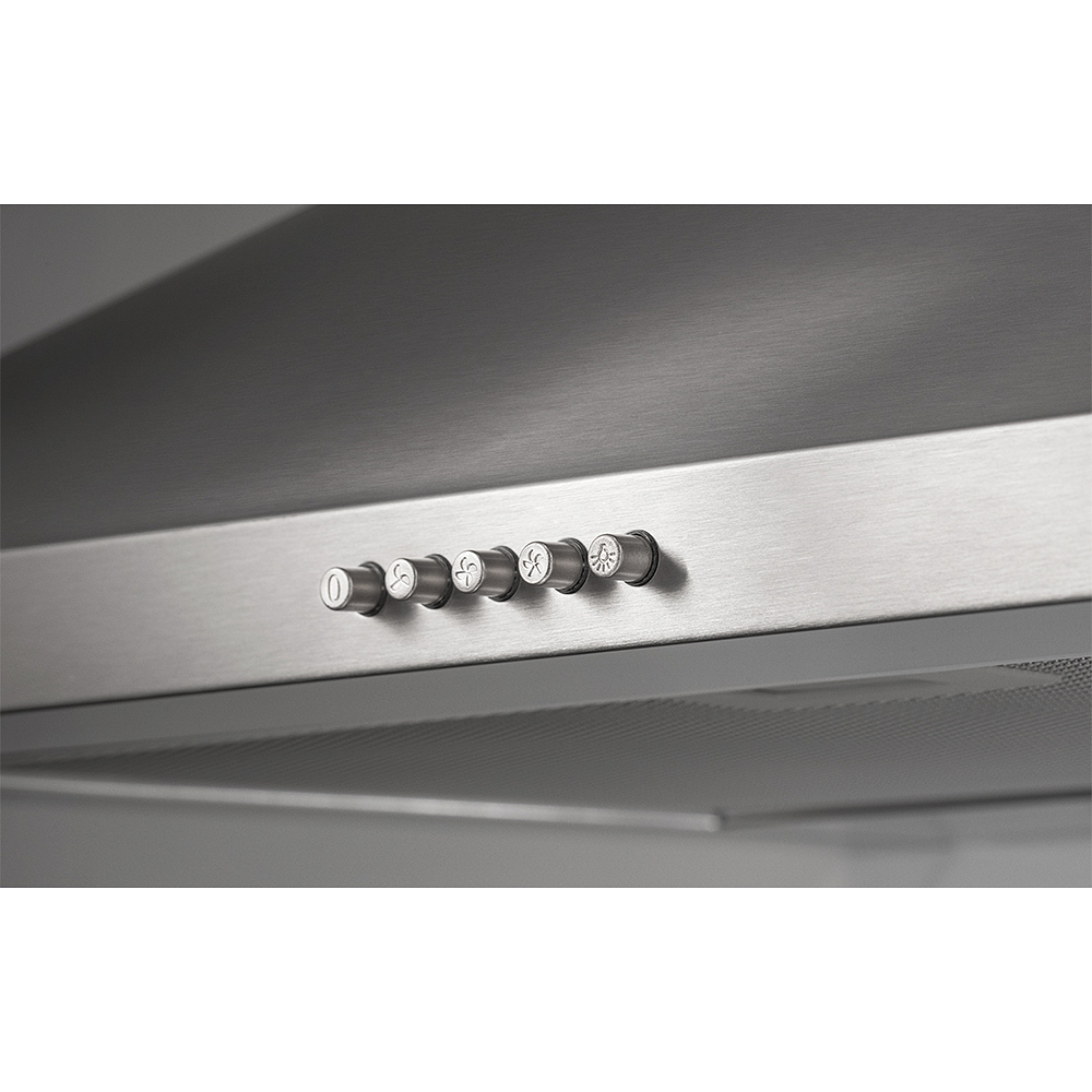 Прибор оборудован металлическим и угольным фильтрами. Алюминиевый жировой фильтр грубой очистки защищает внутренние механизмы от жировых капель. Угольные фильтры тонкой очистки хорошо абсорбируют запахи и очищают воздух на кухне. Система предусматривает использование заменяемых фильтров KIT0267 (приобретаются отдельно).