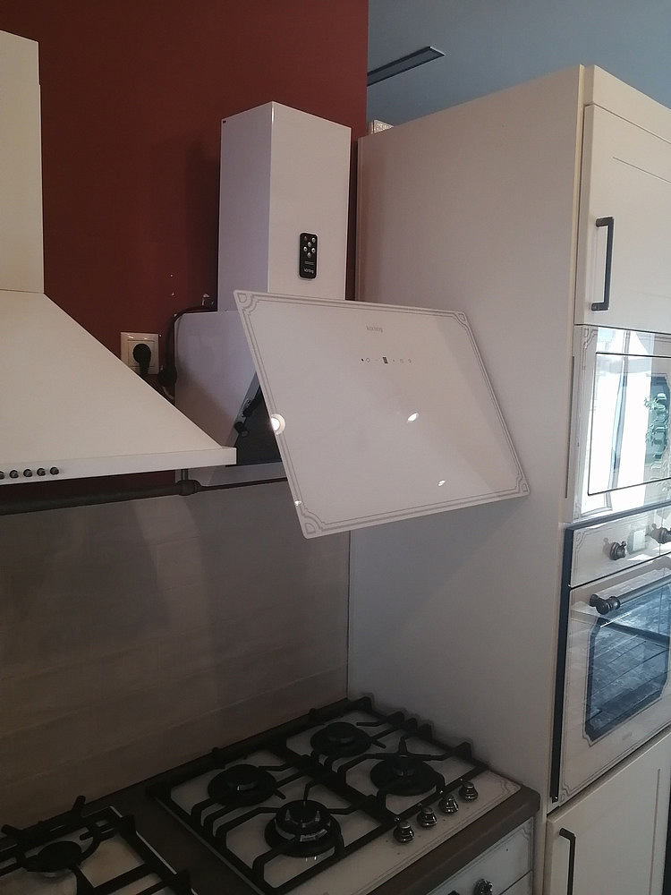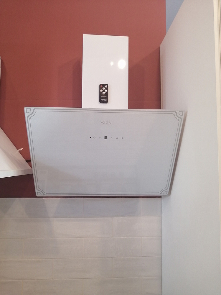 Вытяжка Korting KHC 69059 RGW — наклонная модель с поверхностью из белого стекла в ретро-дизайне. Выбор из 5 режимов и включение подсветки производится при помощи сенсорных переключателей. Светодиодная лампа ярко подсвечивает варочную поверхность. Индикатор указывает на необходимость замены фильтра.
