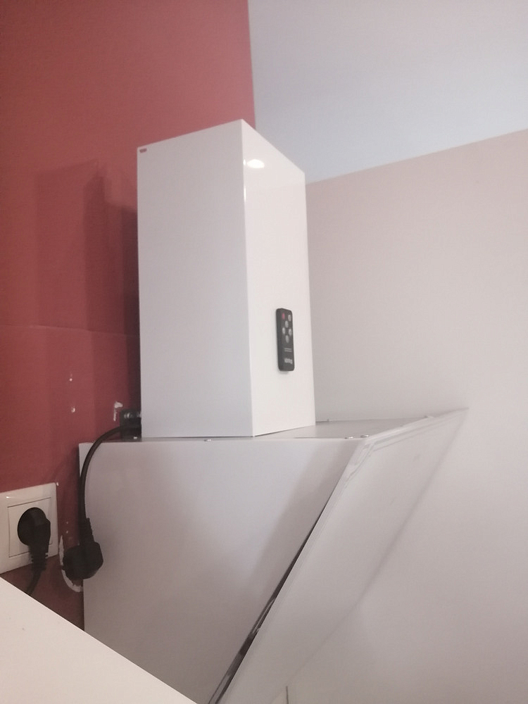 Функцию Clean Air ещё называют функцией чистого воздуха. Нужно нажать на соответствующую клавишу в течение 2 секунд при активной вытяжке. После этого двигатель самостоятельно начнёт включаться каждый час на 1 скорости на 10 минут. В процессе функционирования на дисплее показываются вращающиеся боковые сегменты. По истечении этого времени двигатель выключается.