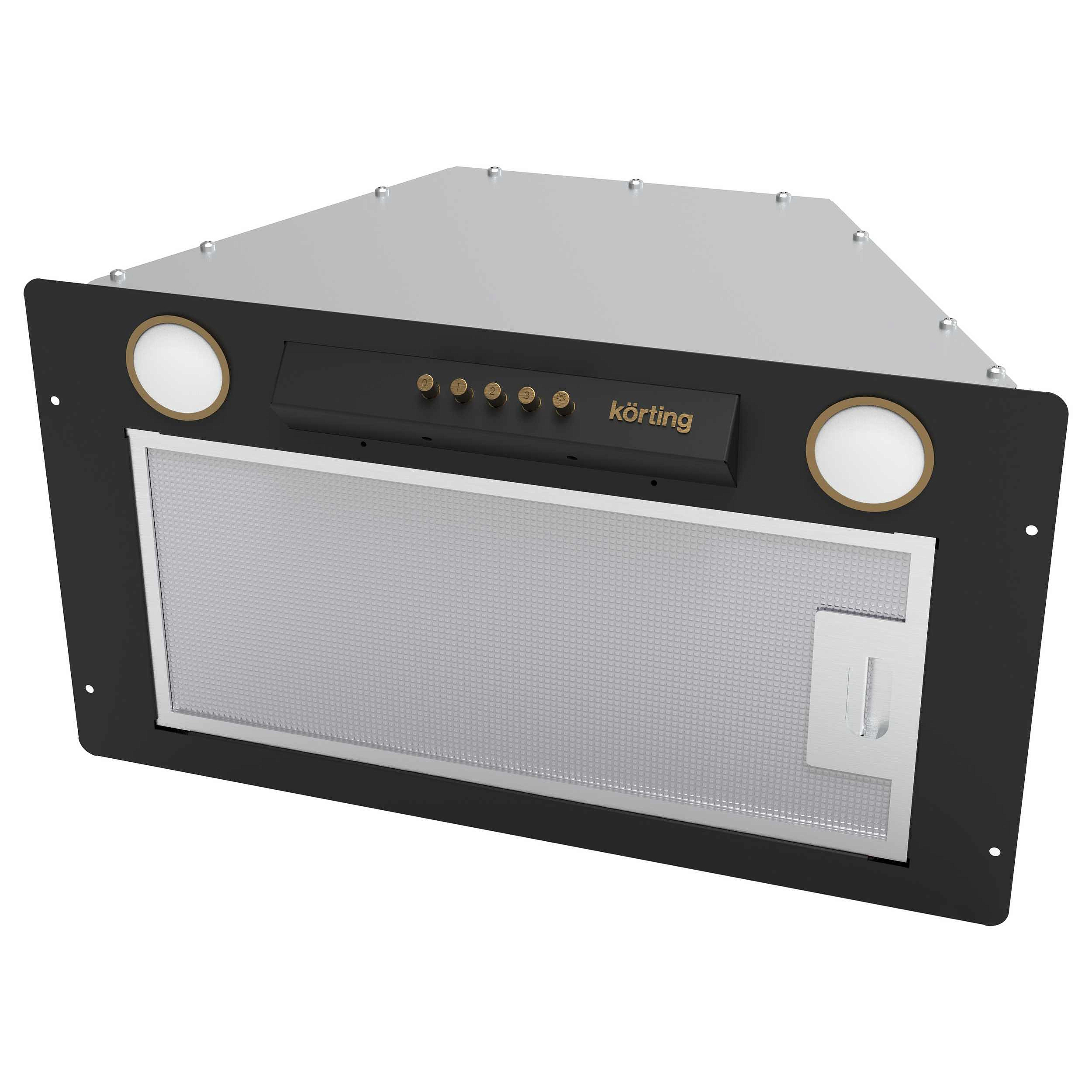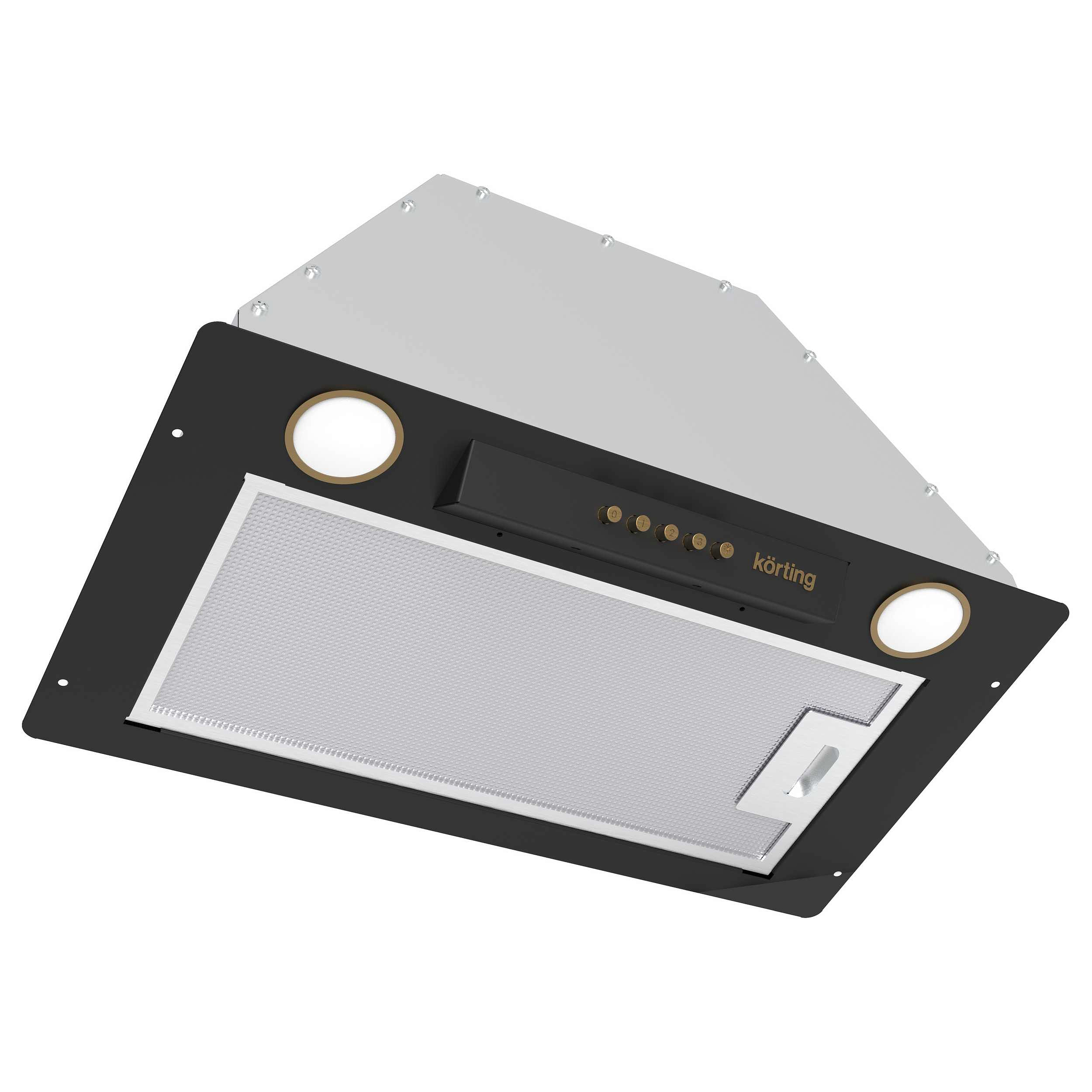 Вытяжка — это удачное сочетание лаконичного дизайна и практичной функциональности. Её корпус выполнен в глубоком чёрном цвете с матовым покрытием, дополнен стильной бронзовой фурнитурой и изготовлен из окрашенной стали, что обеспечивает устойчивость к повседневным загрязнениям и лёгкий уход. Благодаря компактным габаритам — ширина 49,5 см, глубина 28 см, высота 23,5 см — модель идеально встраивается в подвесной шкаф с нишей 46×26,5×23,5 см, сохраняя чистые линии фасада без выступов. Такое решение особенно ценно для небольших кухонь, где каждый сантиметр на счету.