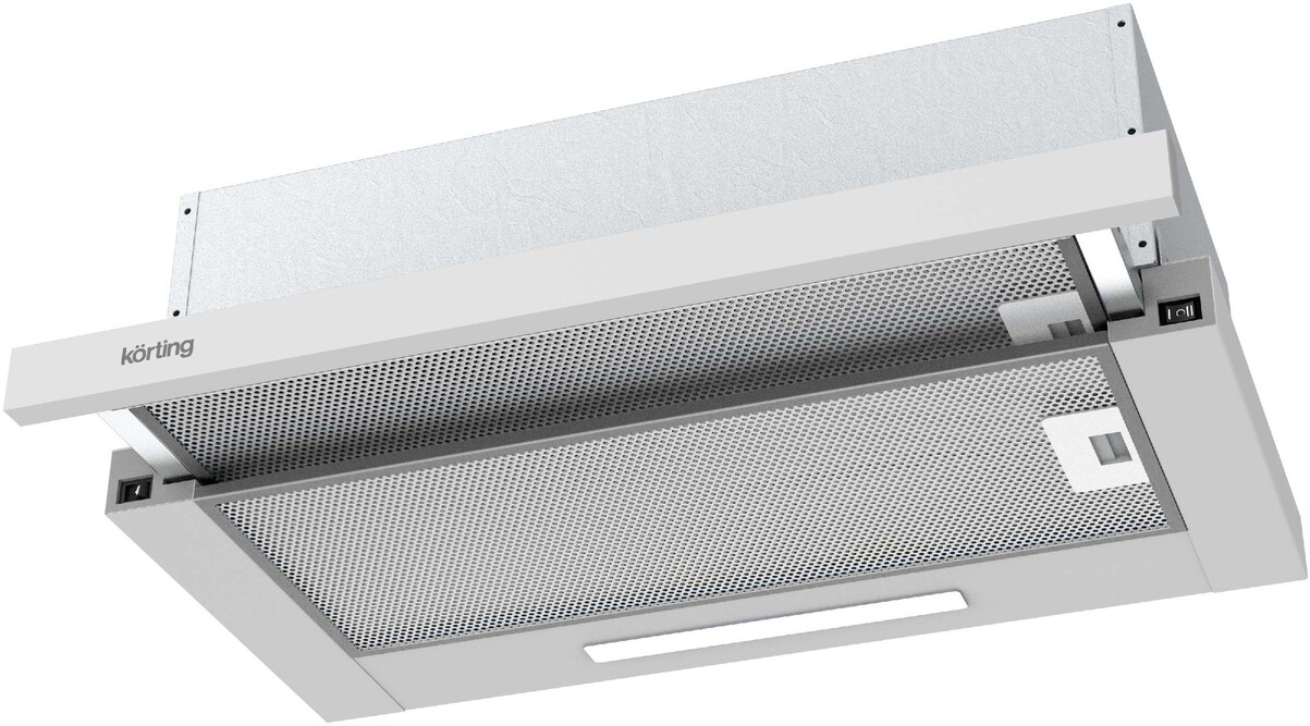 Вытяжка Korting KHP 6512 W выполнена в белом цвете. Выдвижная панель позволит ускорить очистку воздуха в кухне, а кнопочное управление удобно и понятно в эксплуатации. Антивозвратный клапан препятствует попаданию неприятных запахов из вентиляции обратно в помещение.