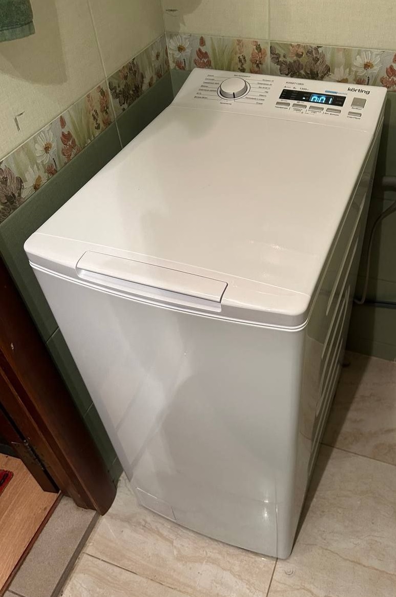 Стиральная машина Korting KWMT 1270 Я стала настоящей находкой для нашей небольшой квартиры. Прежде всего, хочется отметить ее компактные габариты — при ширине всего 40 см она легко вписалась даже в узкую нишу на кухне, не занимая много места. При этом вместимость барабана на 7 кг более чем достаточна для семьи из двух человек: можно спокойно загрузить постельное белье, полотенце и повседневную гигиену за один цикл. Очень порадовала вертикальная загрузка — не нужно наклоняться, чтобы загрузить или выгрузить бельё, что особенно удобно при частой стирке. А ещё машина работает тихо: даже на максимальных 1200 оборотах шум отжима остаётся на комфортном уровне, и ночью её можно запустить без опасений разбудить домочадцев. Из 15 программ стирки особенно популярны режимы «Быстрая стирка» и «Деликатные ткани» — они действительно справляются аккуратно и эффективно.